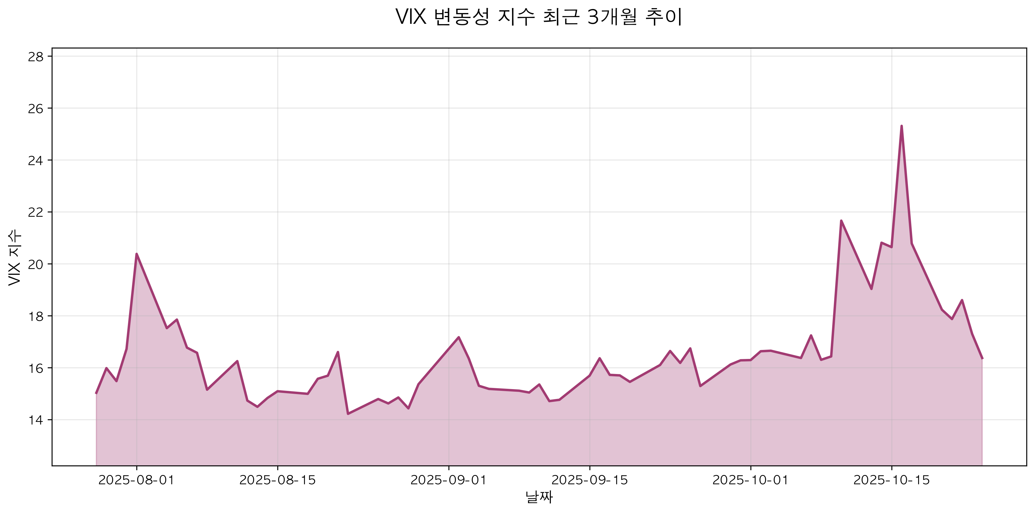 그림: VIX 변동성 지수 최근 3개월 추이 — 무역 긴장 완화로 시장 불안 감소