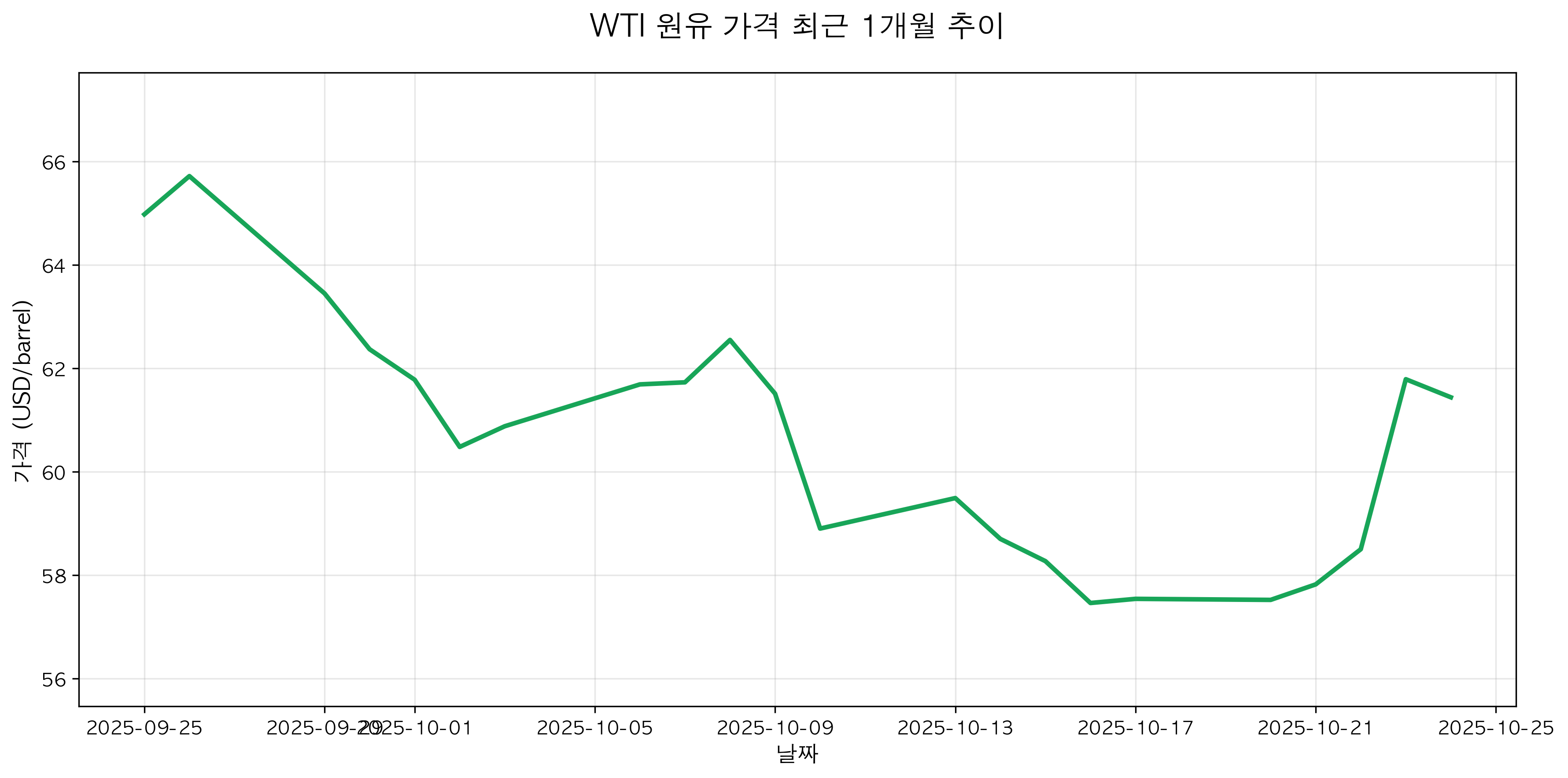 그림: WTI 원유 가격 최근 1개월 추이 — 러시아 제재 강화로 급등