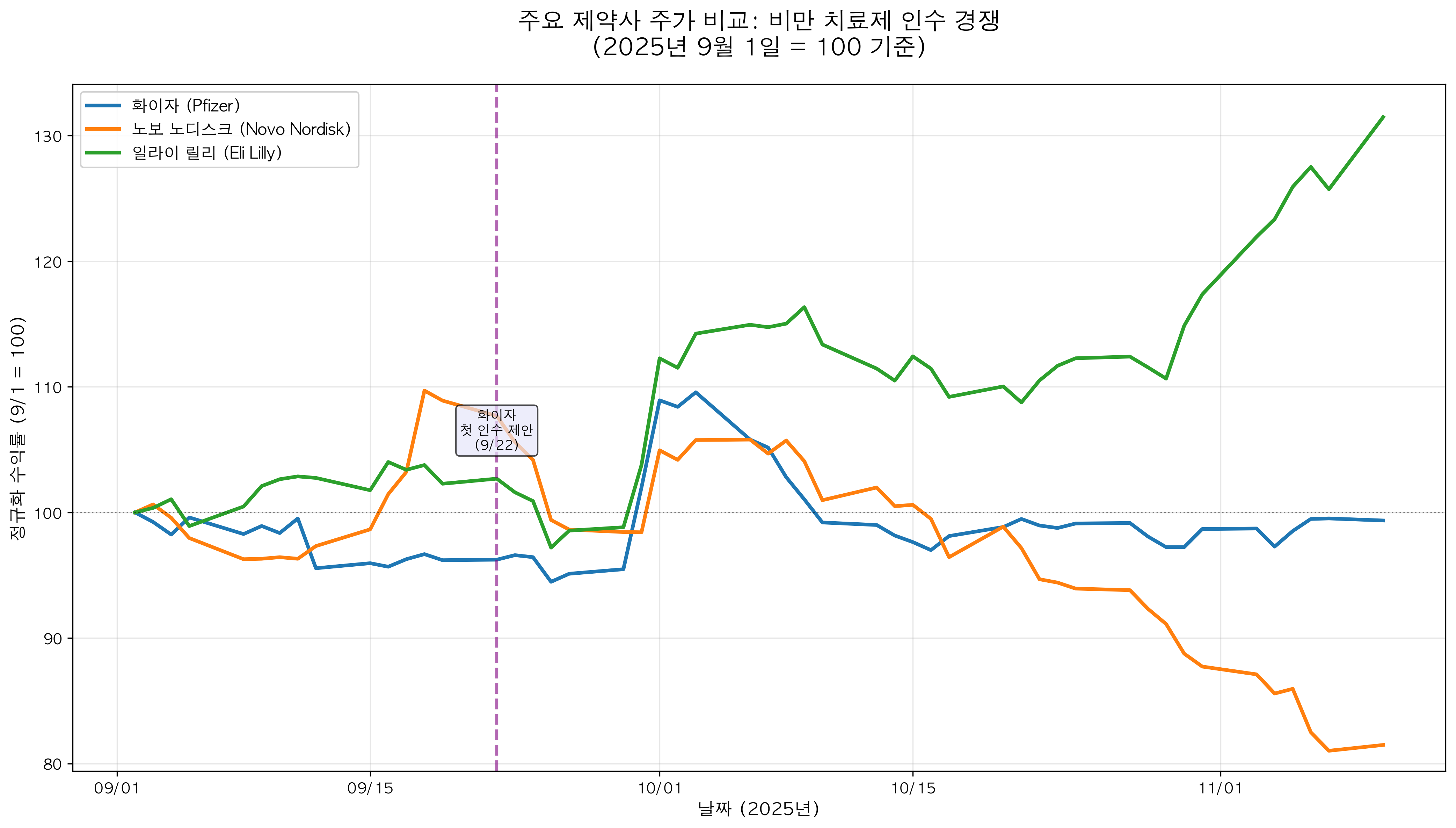 투자 교훈: 거대 제약사들이 차세대 블록버스터 약물 파이프라인 확보를 위해 높은 프리미엄을 지불할 의향이 있습니다. 비만 치료제 시장은 폭발적 성장이 예상되는 분야로, 관련 바이오텍 기업들의 M&A 가치가 급등하고 있습니다. 규제 리스크(독점 금지법)도 M&A 성공의 중요한 변수입니다.